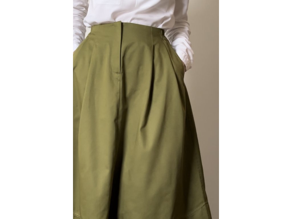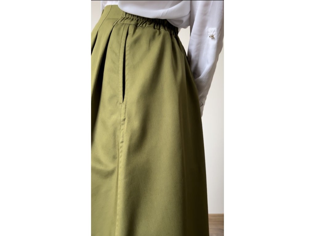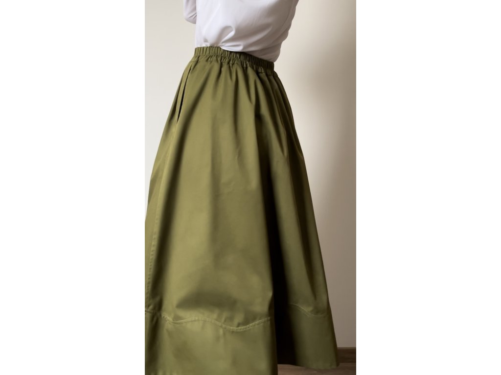 Tato sukně je dokonalým spojením čistého designu a propracovaného řemesla. Žádné zbytečné ozdoby, žádné rušivé prvky – jen klidná elegance, kterou snadno zkombinujete se svými oblíbenými kousky. A malé tajemství? Na rubní straně ji zdobí jemné květinové lemování, které je tu jen pro vás.