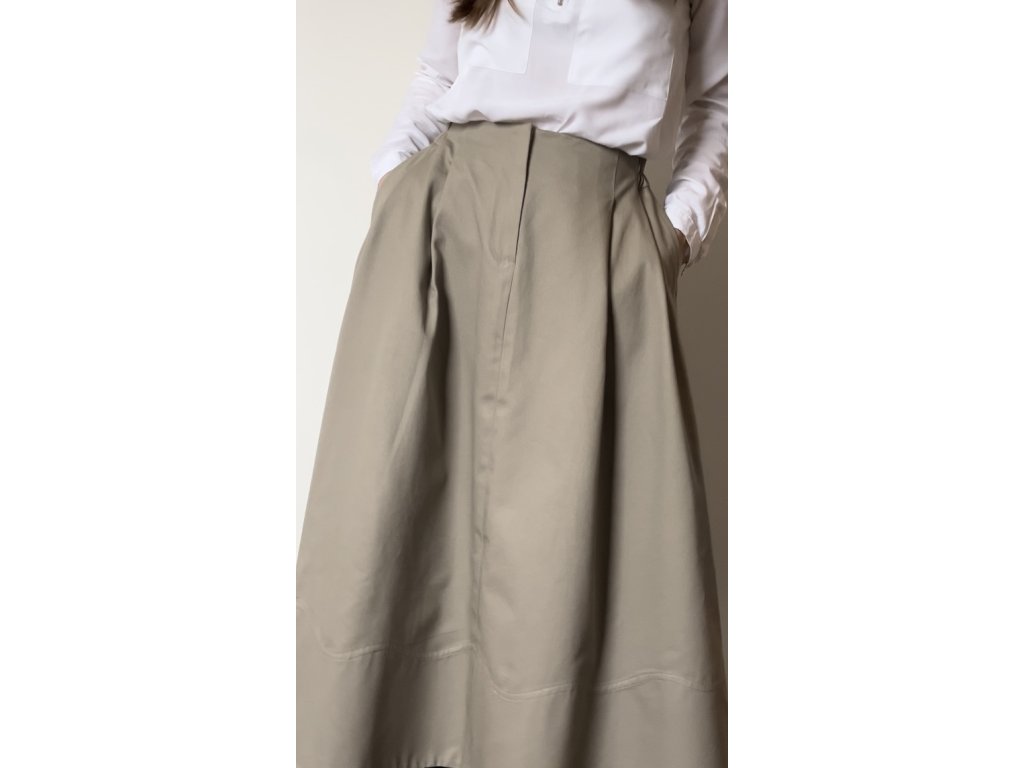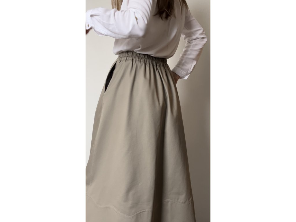 Tato sukně je dokonalým spojením čistého designu a propracovaného řemesla. Žádné zbytečné ozdoby, žádné rušivé prvky – jen klidná elegance, kterou snadno zkombinujete se svými oblíbenými kousky. A malé tajemství? Na rubní straně ji zdobí jemné květinové lemování, které je tu jen pro vás.